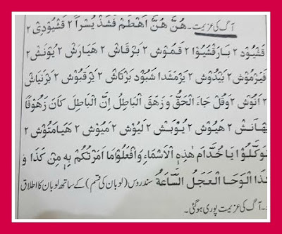 Aur jab talib matloob se maqablee se aziz aa jai aur is se muqablee ka koi rasta na payee to pher tum neache die gai naqush ko matloob ke nishan per yani us ke istimall suhuda kapre per munasib mushadee se likho yani saat ka khayal raho ke mushtei ya zuhra ki ho aur din jumme ya mangal ka ho.